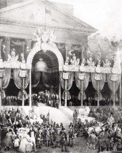 J.B. Madou en P. Lauters, Inhuldiging van Leopold I, litho, Brussel, Broodhuis